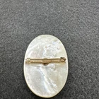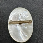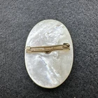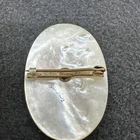 This beautiful oval brooch is a Victorian Mother-of-Pearl piece that exudes elegance and charm. The intricate design and craftsmanship of this antique jewelry item are evident in the delicate beige color and the unique shape. The brooch is made of Mother of Pearl material and is 2 inches in length, making it suitable for both men and women. The brooch is an original piece from the Edwardian era (1901-1910) and is a vintage item, making it a perfect addition to any antique collection. The brooch is a type of fashion accessory that can be worn on any occasion and adds a touch of sophistication to any outfit. The United States is the country of origin for this antique brooch, which is a must-have for any collector of vintage jewelry.