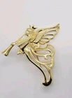 Vintage Angel Brooch Playing Horn Gold Tone Pin 3 in