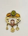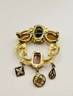 Vintage Charm Brooch Pin Jeweled Ornate Victorian Gold-Tone ELEGANT