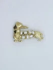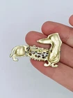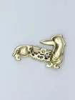 Vintage Dachshund Dog Pearl Clear Rhinestone Brushed Gold Tone Pin Brooch