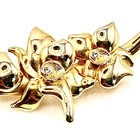 This vintage Estate brooch is a stunning piece of jewelry that will make a statement in any collection. The intricate design features delicate flowers and lilies, with sparkling crystals that catch the light beautifully. Measuring at 4 inches in length, this brooch is perfect for any occasion, whether it be a special event like a wedding or graduation, or an everyday accessory. The piece is made of gold-tone metal and has a beautiful brilliance cut to the crystals. The brooch is eye-clean and has excellent cut grade. The Estate brooch is a perfect addition to any fashion jewelry collection and is sure to impress. This brooch is in excellent condition! This is a pre-owned piece. It may cleaning. There may be scratching, chips, normal weavr, missing stones, etc… See Photos. If you have any questions, please feel free to contact me via eBay messaging. Thank you for stopping by. Make sure to check out other items in my store. Your satisfaction is my priority! Have a wonderfully blessed day!. Your satisfaction is my priority! Have a wonderfully blessed day!