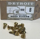 New old stock 12 screws. box in picture is not included Add a touch of vintage charm to your next DIY project with these flat head brass wood screws from Detroid Bolt&Nut. The screws are made of high-quality brass material and come in a set of 12, each measuring 1/2" x #8. These antique original screws are perfect for use in architectural and garden hardware, and are sure to give any piece of furniture or decor a unique and authentic look. The screws are colored in beautiful brass, providing a classic and timeless appearance that is perfect for any antique or vintage piece. Whether you are a collector or an enthusiast, these brass screws are a must-have for any hardware or screw collection.