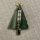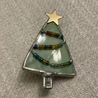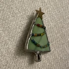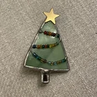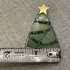 Vintage Hand Made Stained Glass Beaded Wire Work Christmas Tree Brooch Pin Star