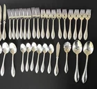 This listing is for 47 pieces Oneida "ARbor-American Harmony" design stainless steel flatware lot. These are in contemporary style with beaded glossy design and made in the U.S.A. in the 1990's. Markings are "STAINLESS BY ONEIDA ", "ONEIDA USA" or "ONEIDA" on the back side, knives have no marking. • Dinner Knife - 12 • Dinner Fork - 8 • Salad Fork - 9 • Table Spoon - 8 • Tea Spoon - 6 • Sugar/Jam Scallop Spoon - 1 • Butter Knife - 1 • Serving Spoon - 1 Total: 47 pieces The weight for this lot is 5 lbs 8 oz. These are in silver-tone stainless steel flatware. Any color or gold tone is just light reflection. These are previously owned condition as shown. A $1 bill is placed for size reference and not included. I do not wish to take return, so please review photos and ask all the necessary questions before purchasing this item. * * * Non-smoking environment! * * *