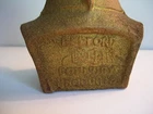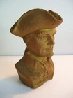 This is what I believe to be a sand casted mold of a head/bust figurine of the head of Paul Revere. This is stamped Redford Foundry Products on the reverse side. Sand casted molds are created for the casting of metal products. This sandy-textured and gritty mold is copper-colored with a sparkly or metallic finish. It measures approximately 6 1/2" tall and is about 4 1/3" across when measured at the corners of the tricorn hat. Nicely detailed down to the eye pupils, eyebrows, neck cravat, and hair wig that peeks out from beneath the tricorn hat. Bottom says "PAUL REVERE." Has a small break/chip in casting mold at bottom front edge and some wear on top of hat but otherwise in very good condition. A scarce item. Sale final; no return. Thanks for looking! Now for the fine print… I am happy to entertain your best, fair offer! I use the United States Postal Service (USPS) for all shipping. Items get shipped either first class or priority mail depending on their weight and size. Please keep in mind that shipping is expensive. I never charge an excessive shipping amount though I may add $1 to help defray the cost of shipping supplies. I will gladly invoice you and combine shipping for multiple items purchased. I ship every day; Monday through Friday (except during snow and ice storms) but do not ship on Saturdays. Thanks for your purchase!