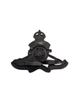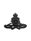 The WW1 British RA Royal Artillery Officers OSD Cap Badge is a significant piece of military memorabilia from the Great War, symbolizing the esteemed Royal Artillery regiment. Crafted from high-quality bronze, this Officer's Service Dress (OSD) cap badge features intricate detailing emblematic of the Royal Artillery's proud history. At its center is the iconic artillery cannon, poised for action, surmounted by a crown, reflecting the regiment's royal patronage, and the mottoes "Ubique" (Everywhere) and "Quo Fas Et Gloria Ducunt" (Where Right and Glory Lead). Worn by officers on their service dress caps, this badge not only served as a marker of rank and regiment but also as a symbol of duty, honor, and the courage displayed by those who fought in the trenches of World War I. Collectors and history enthusiasts hold this badge in high regard for its historical significance and exquisite craftsmanship.
