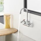 Embrace classic kitchen styling with this wall-mounted kitchen faucet. Two metal handles ramp up modern styling while offering efficient water control, Swiveling spout for accessibility and convenience.The chrome finishing completes the sleek look of this durably constructed brass faucet .There are two kiinds faucets with different handles to choose from.Features Decorative brass wall mount faucet Metal lever handles Hot and cold buttons Chrome finish Easy to use swivel spoutDimension&Weight Overall:9"*5"*2.8" Weight: 3.682 lbs Free Shipping Over $49.99* Details Wall Mount Chrome Kitchen Faucets with Two Handles Product Description: Embrace classic kitchen styling with this wall-mounted kitchen faucet. Two metal handles ramp up modern styling while offering efficient water control, Swiveling spout for accessibility and convenience.The chrome finishing completes the sleek look of this durably constructed brass faucet .There are two kiinds faucets with different handles to choose from. Features Decorative brass wall mount faucet Metal lever handles Hot and cold buttons Chrome finish Easy to use swivel spout Dimension&Weight Overall:9"*5"*2.8" Weight3.682 lbs