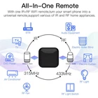 Product Description If you have any questions, please contact customer service first, do not open disputes easily, thank you! Features: 100% Brand New and High Quality! Newest version with RF and IR highly compatible:All-in-one IR and RF remote control devotes to activating Air conditioners, TVs, fans, DVDs, STBs, TV BOXes etc Infraed devices and even RF appliances as RF light,RF switch, RF roller blinds etc with one single remote control;storage of thousands of IR codes.(Support IR 38KHZ and RF 433/315MHz) Multiple remote control RF protocol ensures a better user experience for controlling different 433MHz RF devices as curtain\shades motor,light switch;Local IR code for faster response. WiFi/4G App Remote Control from Anywhere:Equipped with MOES new smart controller,you may control IR and RF devices with free mobile "Smart Life/Tuya" App anytime from anywhere(Compatible with for Android & for iOS).Control your appliances in advance when you are away from home.Turn your smart phone into a universal remote in an easier way. Hands-free Voice Control: for Alexa,set A/C to 77 degrees Fahrenheit. A simple voice command can activate the controller to remotely control most Infrared and RF Control Devices,such as A/C, FAN ,TV, DVD, STB, TV BOX and RF protocol devices.(Furthermore compatible brands or devices ,please check attached list or Smart Life App.) Customized DIY Copy Function: If you can not find device brand in "smarlife"App, Programable DIY learning function may help to copy same function from original remote. Most IR and RF remote control Devices will be applicable such as fireplaces, heater, ceiling fans. Specifications: Power Input: DC 5V/1A(Micro usb2.0) Model: RF-R1 Stand-by Power: ≤0.4W Controlling Distance: Horizontal direction ≤8m, Opposite Direction ≤15m(Finally effect by environment) IR control direction: Multiple Way Operating Temperature: -10℃~50℃ Operating humidity: ≤85%RH Connection type: 2.4GHz 802.11b/g/n Carrier: 38KHZ APP SUPPORT: for Android 4.0/for iOS 8.0 above Wireless Frequency: 2.4GHz RF:433/315MHz Dimension: 7*7*4.8mm/0.27*0.27*0.18in Package Includes: 1* Universal IR remote control 1* power cable About Us We accept all payments authorized by eBay. About Us We accept all payments authorized by eBay. powered by