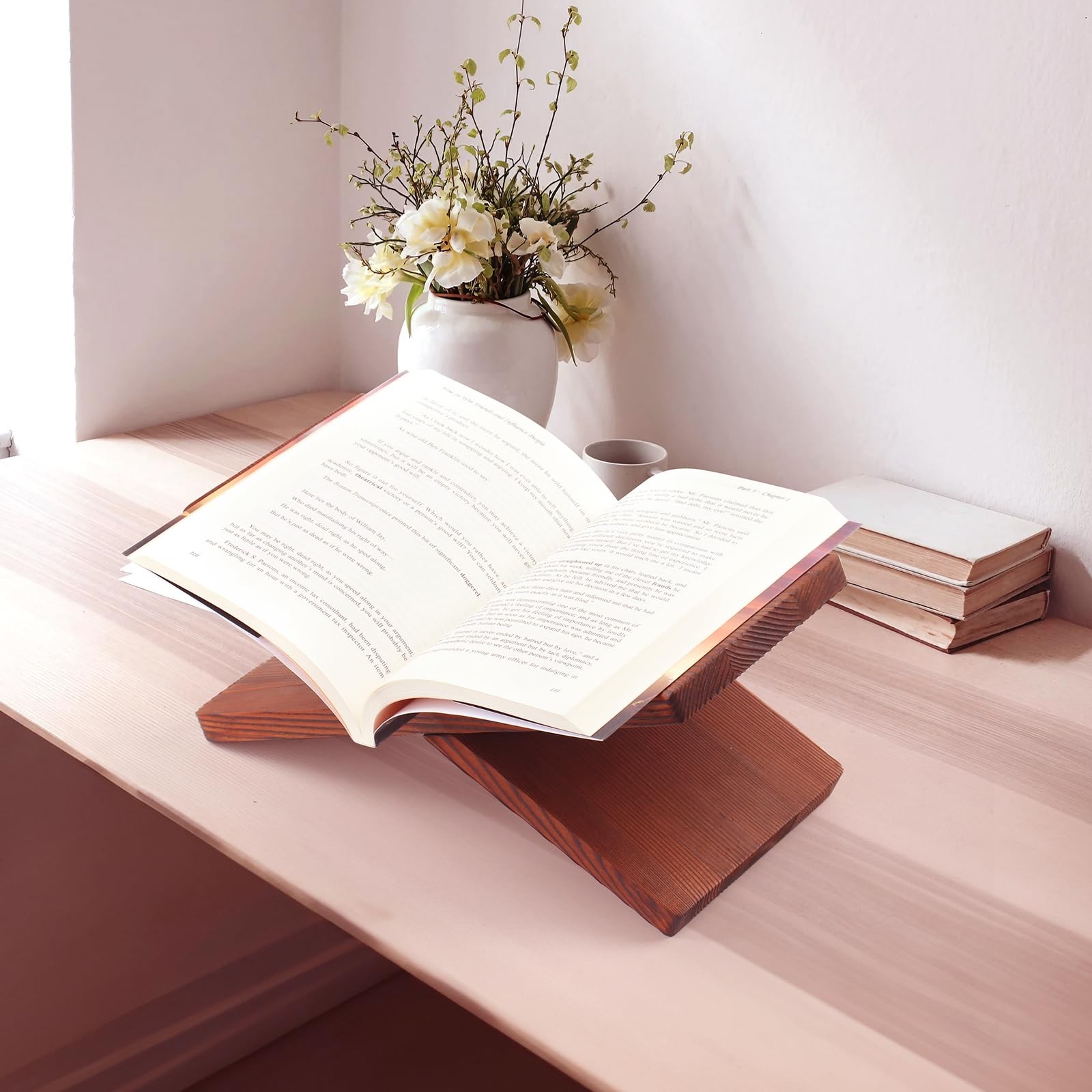 Wood book stand for reading - book display stand, cook book stand, textbook stand, recipe book holder stand, open book holder (Black), 11*6*5.5 inch X-shaped display stand: Elevate your reading and display experience with our wood book holder stand. Perfect for a range of publications - from Artworks to Bibles, Cookbooks, and Magazines. Designed to cherish the spine of your favorite reads, this X-shaped, solid wood stand ensures a perfect angle for reading, blending seamlessly into any décor. Elevate your decor: Transform any space with our desktop book stands, ideal for showcasing books stylishly in cafes, libraries, offices, or right at home. Its solid wood construction and sleek design enhance any setting, making it a must-have for women looking to display art books, spiritual readings, or coffee table books elegantly. Beyond Ordinary Bookshelves: Ditch the conventional with our uniquely crafted solid wood book display stand. Its portability makes it a striking accessory, not just for tabletops but also for creating memorable Instagram moments anywhere, from travels to camping trips. A true blend of function and fashion for those who love to stand out. Easy assembly and disassembly: Experience hassle-free assembly with our user-friendly design. Simply slide the solid wood pieces together in a criss-cross fashion for a robust setup. Made from 0.6in thick wood, it measures 15.8in in width and 9.5in in depth, providing a stable and stylish platform for your precious books, weighing just 1.8 lbs. Simple, Effortless Maintenance: Keeping your book display stand in pristine condition is as easy as wiping it with a soft, dry cloth. For more thorough cleaning, a mild soap is sufficient. Avoid abrasive pads or household cleaners to protect the matte black oak surface, preserving its sophisticated appearance for years to facilitate your reading and display needs. Wooden Book Stand are made of natural solid wood, and each piece has unique grain patterns and colors.